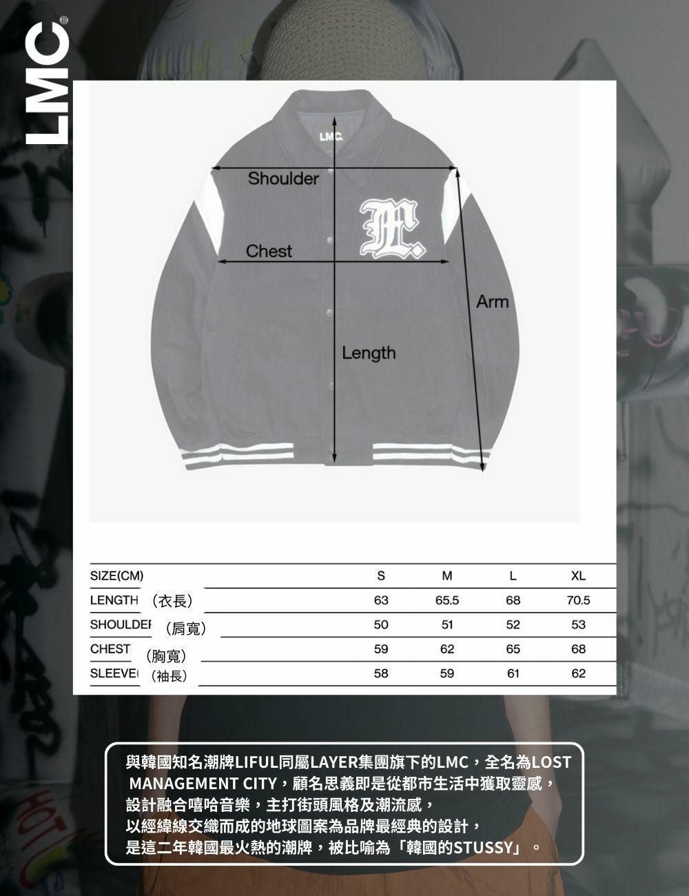 與韓國知名潮牌LIFUL同屬LAYER集團旗下的LMC,全名為LOST MANAGEMENT CITY,顧名思義即是從都市生活中獲取靈感,設計融合嘻哈音樂,主打街頭風格及潮流感,以經緯線交織而成的地球圖案為品牌最經典的設計,是這二年韓國最火熱的潮牌,被比喻為「韓國的STUSSY」。