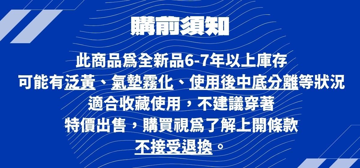 (瑕疵部分:鞋盒髒舊,氧化,脫膠,泛黃...等等)